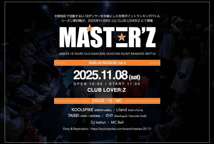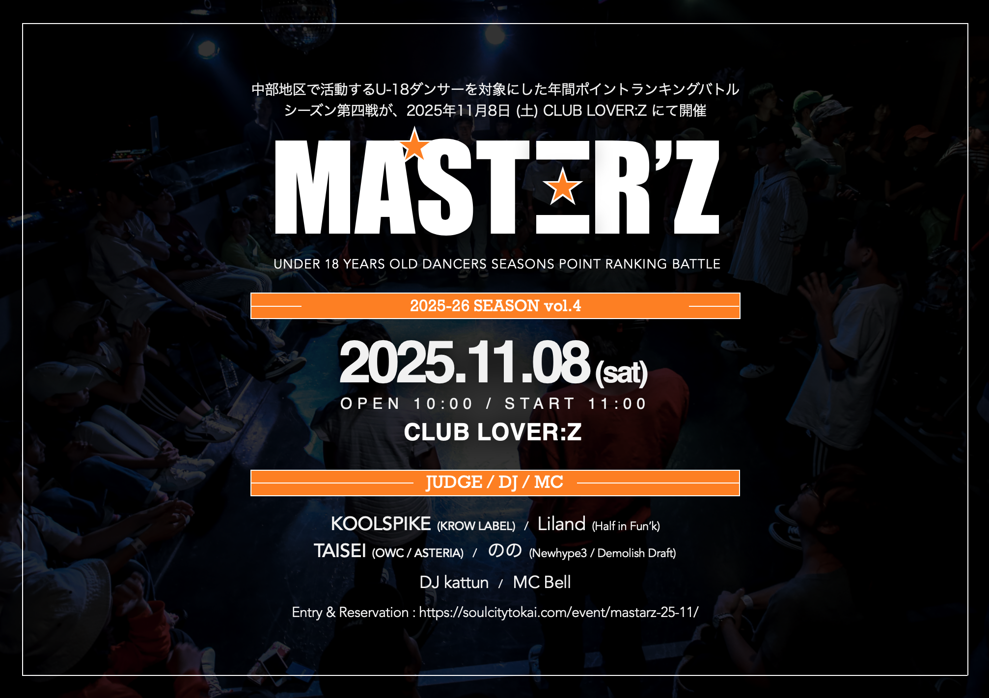 11月082025 BATTLE MAST☆R’Z 2025-26 SEASON vol.4 中部地区で活動する高校生以下のダンサーを対象にした年間ポイント制ダンスバトル『MAST☆R’Z』2025-26 シー...