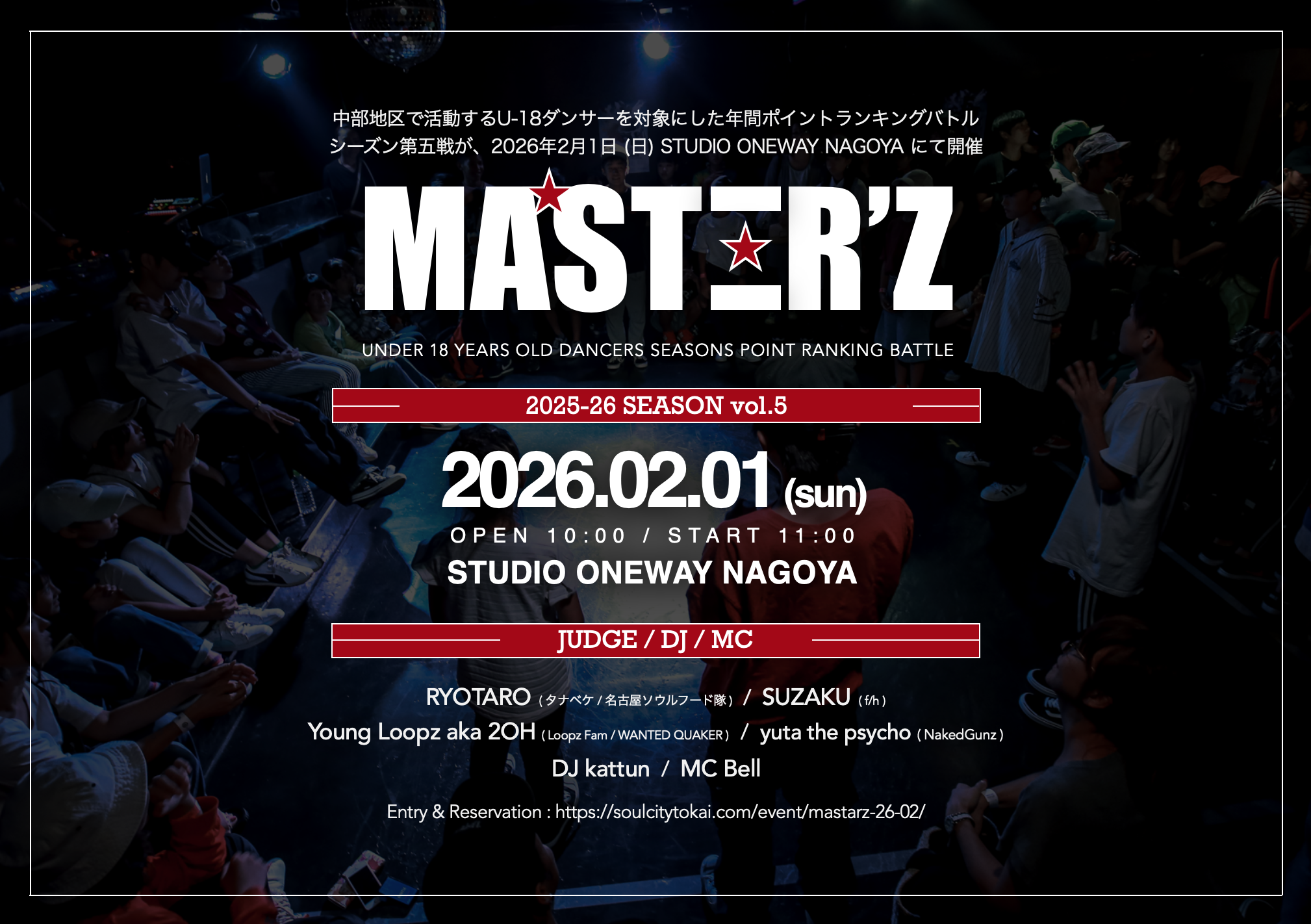 2月012026 BATTLE MAST☆R’Z 2025-26 SEASON vol.5 中部地区で活動する高校生以下のダンサーを対象にした年間ポイント制ダンスバトル『MAST☆R’Z』2025-26 シー...