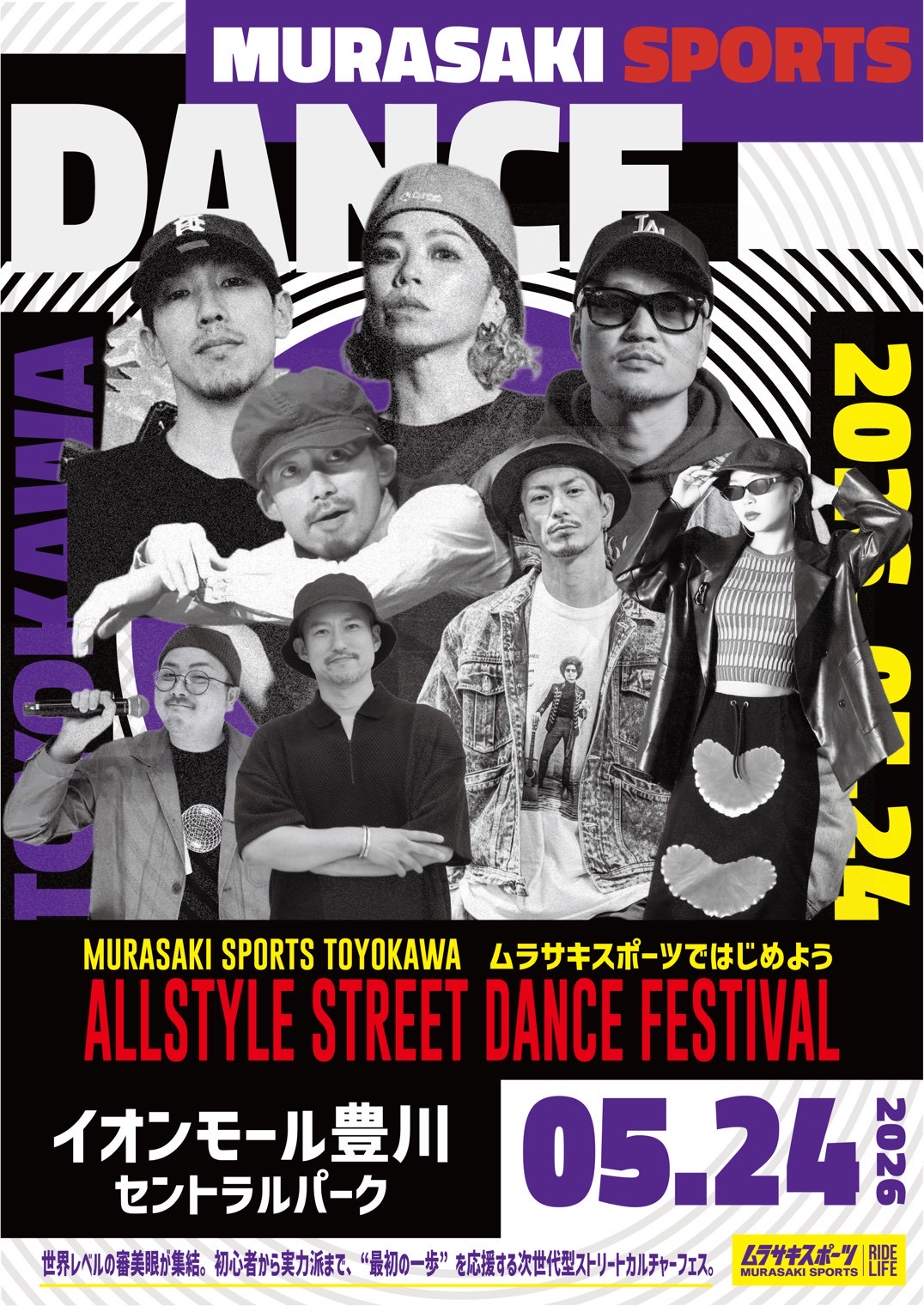 5月242026 CONTEST MURASAKI SPORTS TOYOKAWA ALLSTYLE STREET... ムラサキスポーツが掲げる「挑戦の起点をつくる」というテーマのもと開催される、豪華キャストが集結したダンスバトル&ダン...