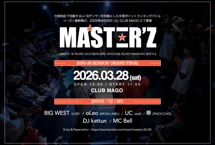 国内最大規模のダンスバトル『マイナビDANCEALIVE』が展開する、中学生以下を対象にした 1on1 部門 KIDS サイドの中部地区予選、シーズン最終戦が、2023年1月8日(日) 名古屋市中区にある CLUB LOVER:Z にて開催!