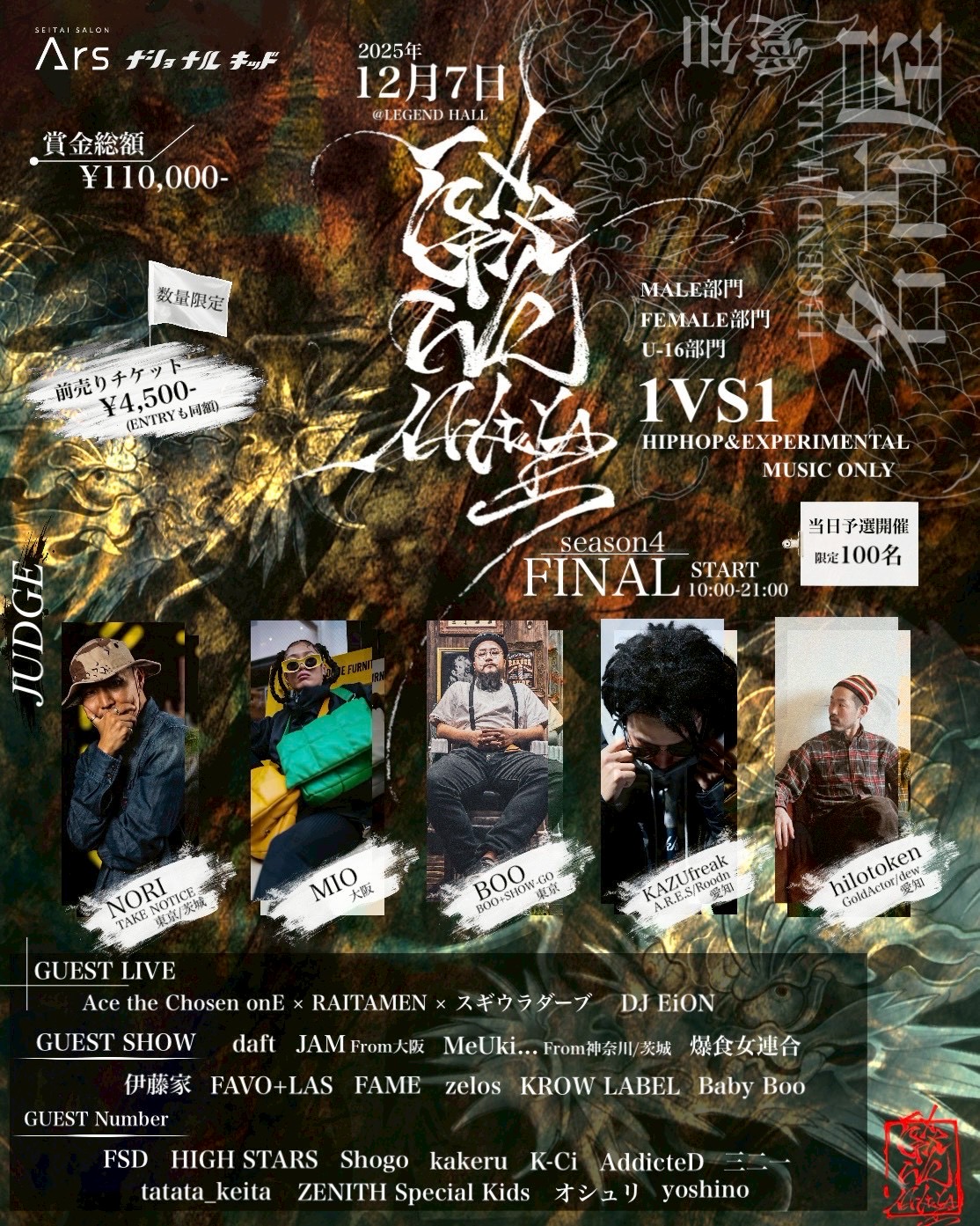 盛り上がりを見せる定期開催のバトルイベント『ExGROUND』4th シーズンのグランドファイナルが、名古屋市中区にある 名古屋レジェンドホール にて開催!