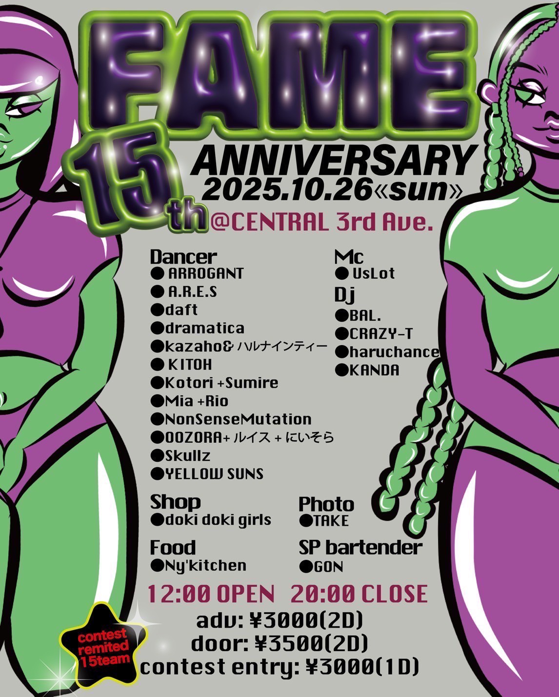 東海地区を拠点に、様々なコンテストやバトルで輝かしい実績を残してきたダンスチーム『FAME』の15周年を記念したパーティーが、名古屋市中区にある CENTRAL にて開催!