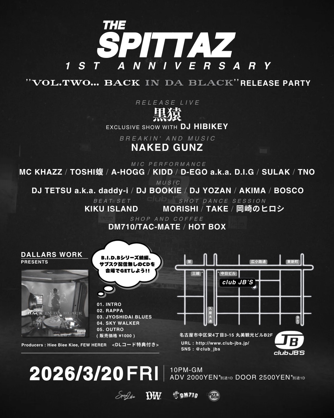 東海地区を拠点に活躍する ヒップホップ・アーティストや、ダンサー、DJ などが一堂に集結し盛り上がりを見せる人気パーティー『THE SPITTAZ』の1周年スペシャルが、名古屋市中区にある CLUB JB’S にて開催!