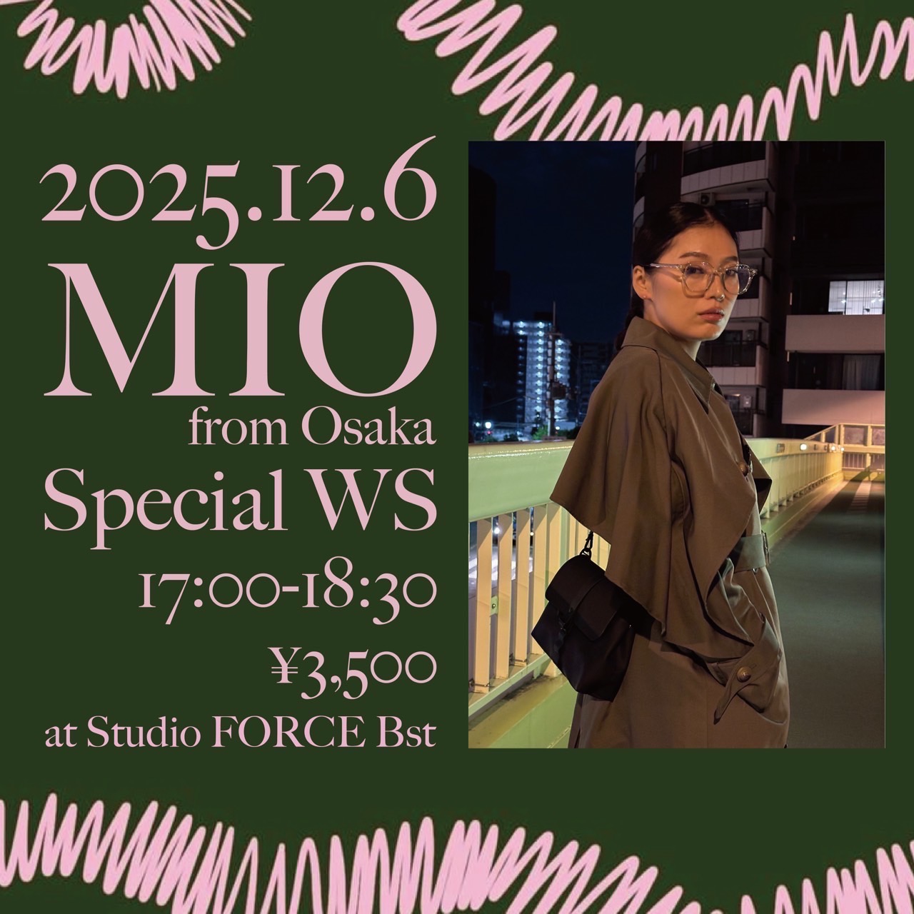 全国の様々なコンテストやバトルで輝かしい実績を誇る、関西 HIOPHOP ダンスシーンを代表するフィメールダンサー『MIO』によるスペシャルワークショップが、名古屋市天白区にある STUDIO FORCE B-Studio にて開催!